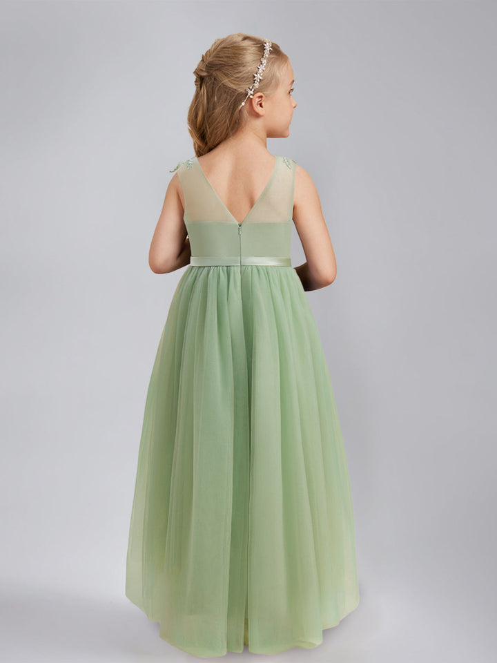 Ball-Gown Round Neck Sleeveless Floor-Length Flower Girl Dress with Appliques