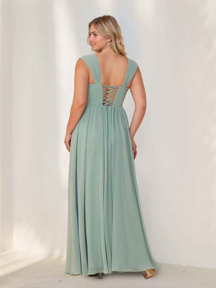 A-Line/Princess Square Neck Sleeveless Floor-Length Chiffon Plus Size Bridesmaid Dresses with Pleats