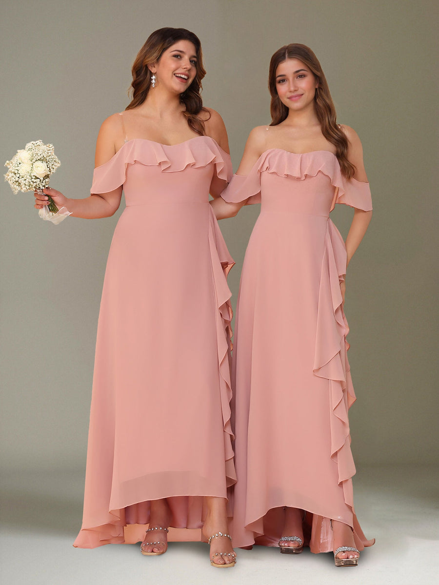 A-Line/Princess Off-the-Shoulder Asymmetrical Chiffon Plus Size Bridesmaid Dresses with Ruffles