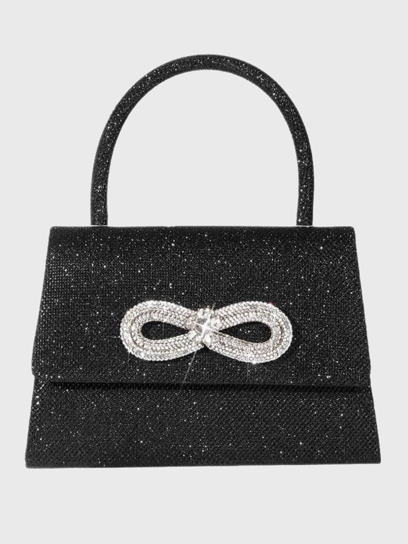 Rose Pink Glitter Handbag with Rhinestone Bow