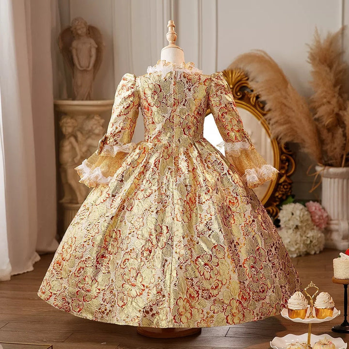 Girl's Ball Gown Round Neck 3/4 Length Sleeves Floor Length Floral Victorian Princess Costume Cosplay Masquerade Rococo Party Dress with Lace