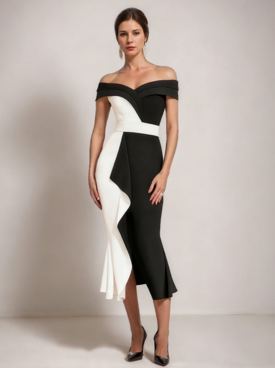 Sheath/Column Off-the-Shoulder Cocktail Dresses with Split Side Ankle-Length