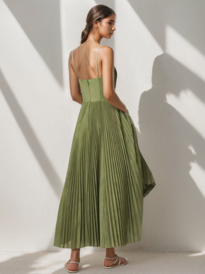 A-Line/Princess Spaghetti Straps Chiffon Cocktail Dresses Ankle-Length Sleeveless Pleated Formal Dresses