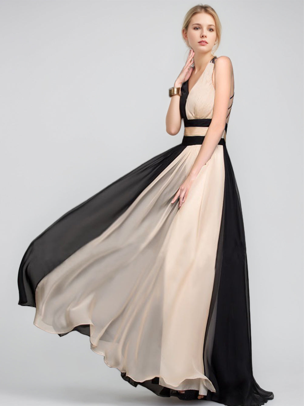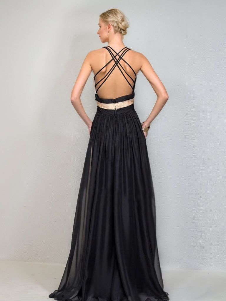 MON8040107W MONDRESSY A-Line/Princess Plunge V-Neck Sleeveless Floor-Length Evening Dresses with Criss-cross Back Straps