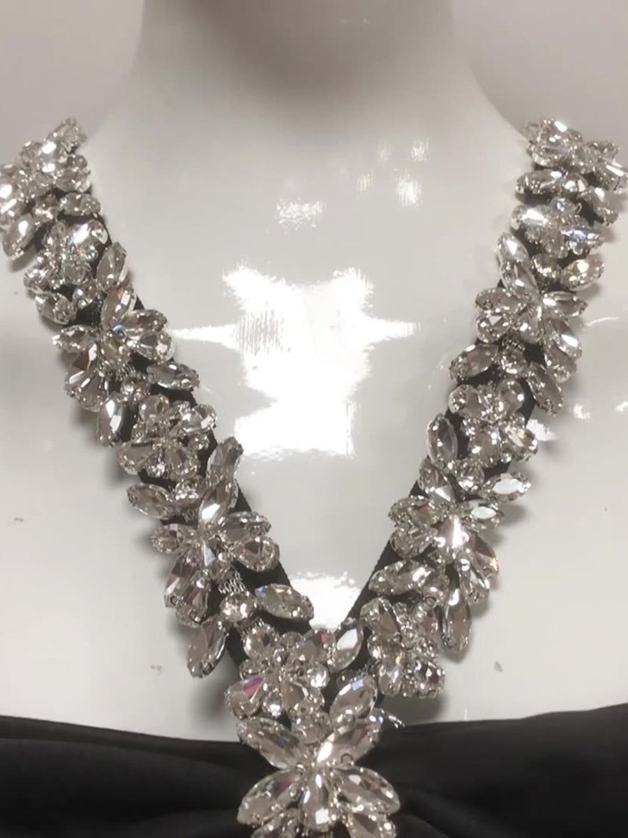 MON8040127W MONDRESSY Sheath/Column Halter Sleeveless Ankle-Length Evening Dresses with Rhinestones & Bows