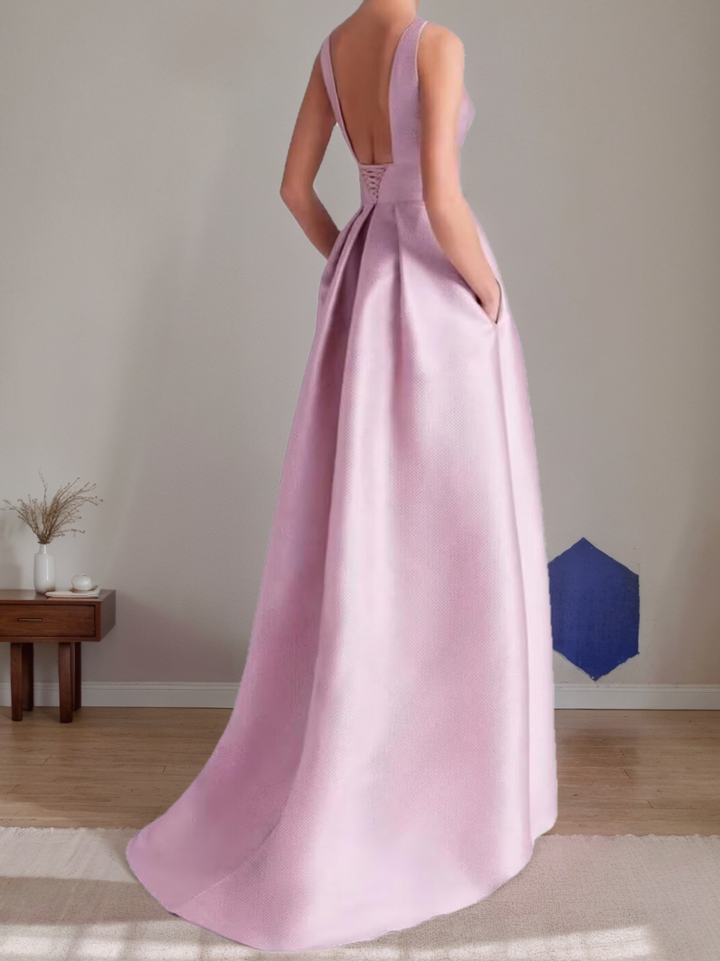 A-Line/Princess V-Neck Sleeveless High-End Evening Dresses with High Split & Beadings & Pocket