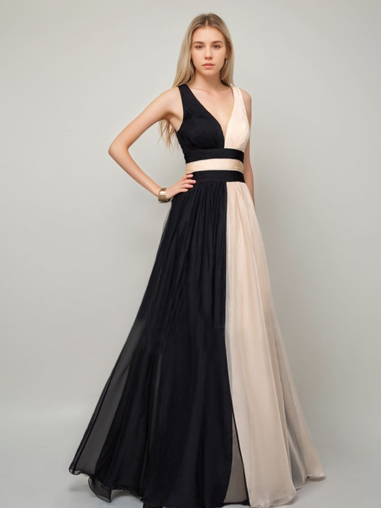 A-Line/Princess Plunge V-Neck Sleeveless Floor-Length Evening Dresses with Criss-cross Back Straps