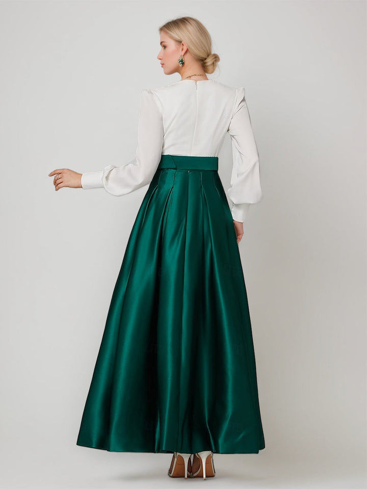 A-Line/Princess V-Neck Long Sleeves Ankle-Length Pleated Evening Dresses with Belt & Slit & Buttons