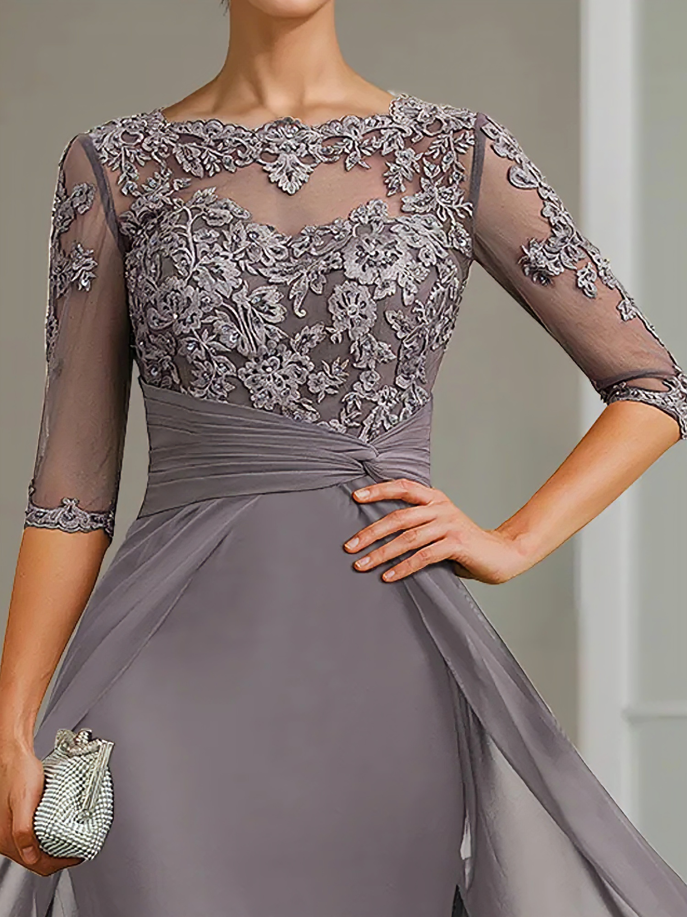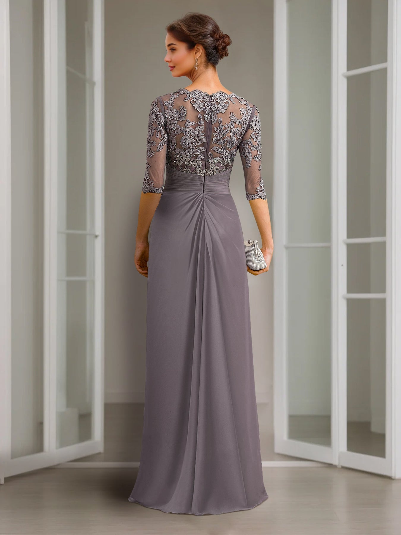 MON2312466 MONDRESSY Sheath/Column Scoop Chiffon Lace Mother of the Bride Dresses Half Sleeves Floor-Length with Appliques