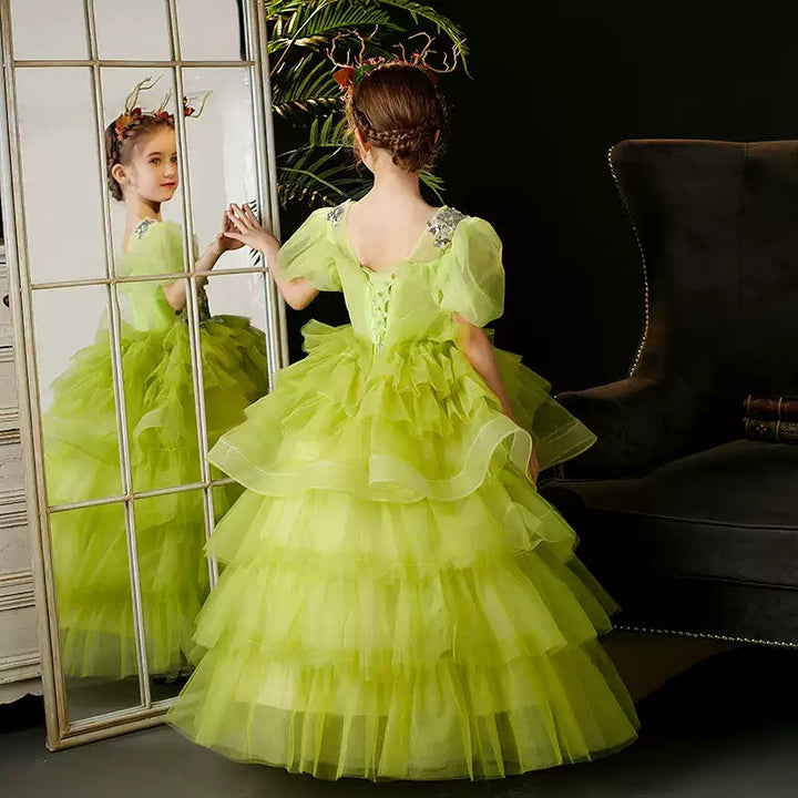 Ball Gown Short Sleeves Multi-Layered Girl Party Dresses with Appliques