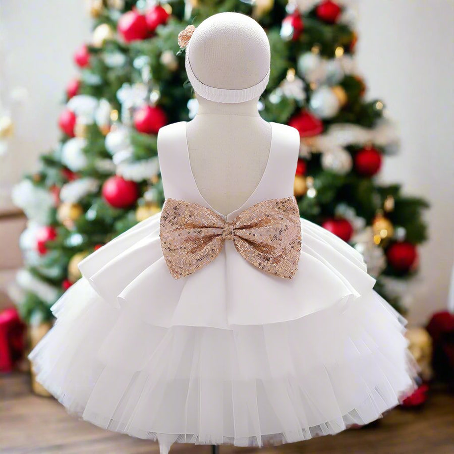 Ball Gown Ruffled Tulle Layered Flower Girl Party Dress with Rhinestone Appliques