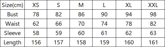 | Bust | 78 | 82 | 86 | 90 | 94 | 98 |