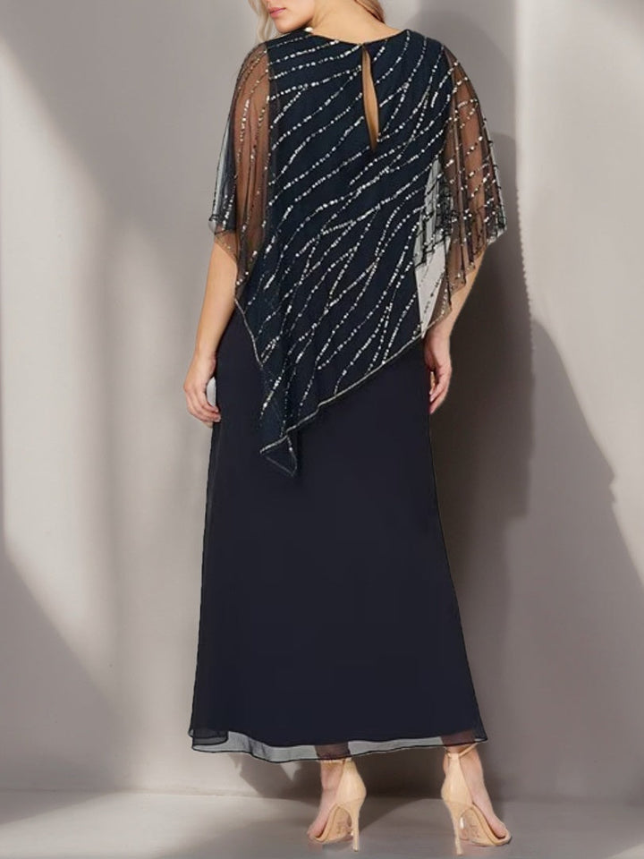 A-Line/Princess V-Neck Half Sleeves Ankle-Length Plus Size Mother of the Bride Dresses with Asymmetrical Cape Popover
