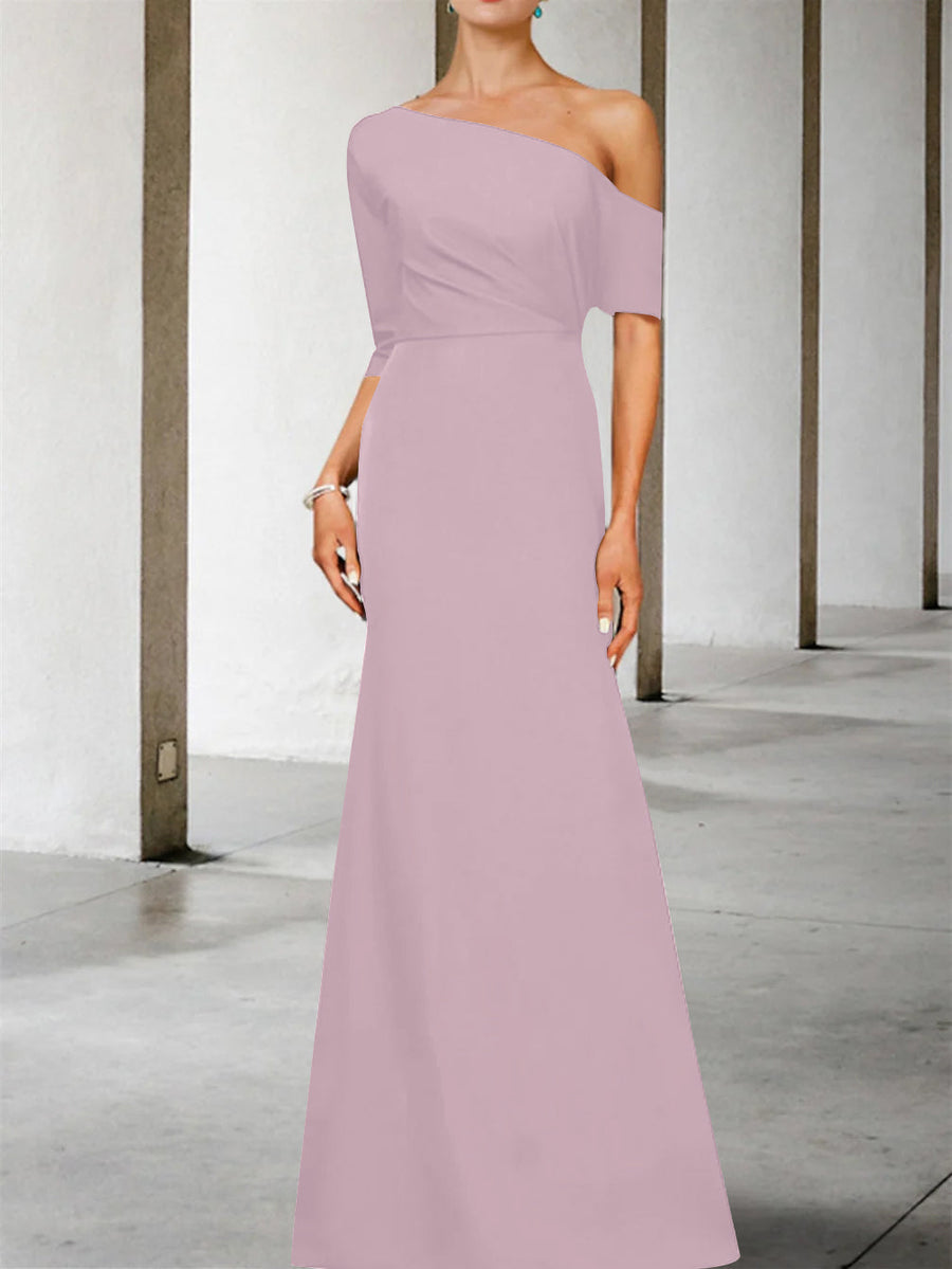 Sheath/Column One-Shoulder Short Sleeves Asymmetrical Mother of the Bride Dresses with Ruffles