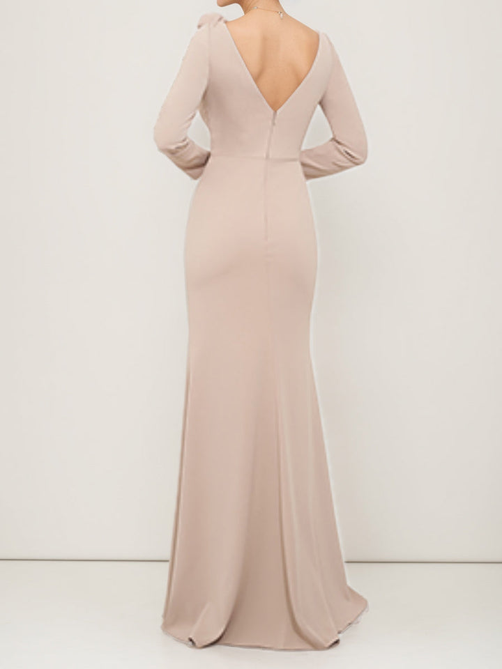Sheath/Column Cowl Neck 3/4 Sleeves Mother Of The Bride & Groom Dresses with Pearl