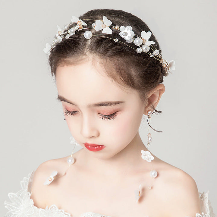 White Children's Dress Accessories Lace Pearl Headpiece