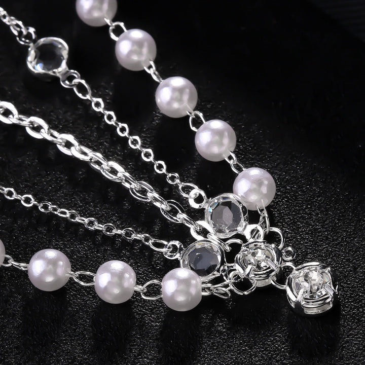 Pearl Double Layer Pendant Rhinestone Hairpiece Accessory