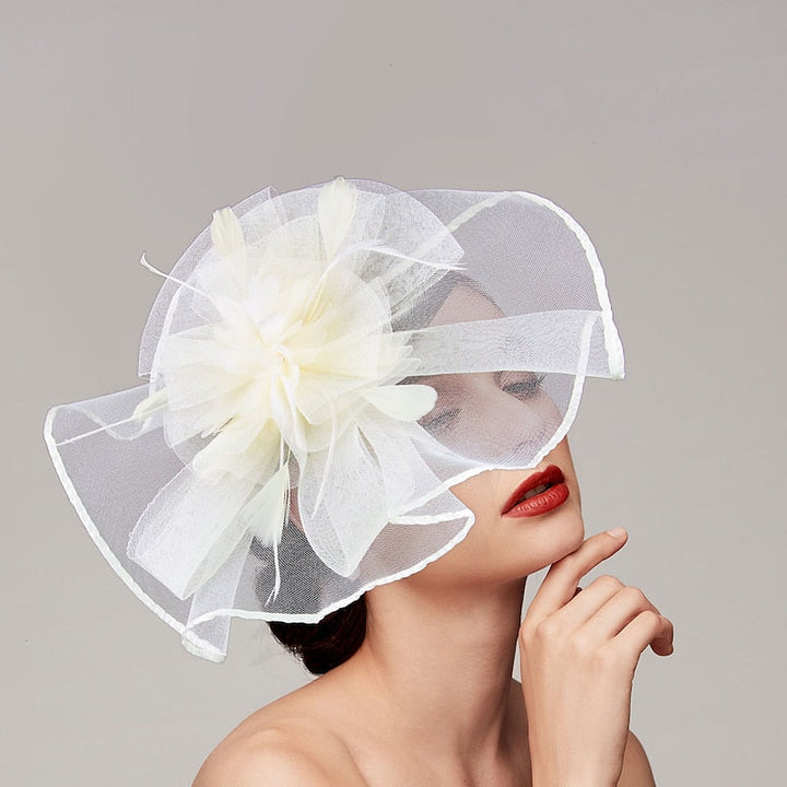 Vintage Organza Wedding Floppy Hat Fascinators/Headpiece with Feather & Bow