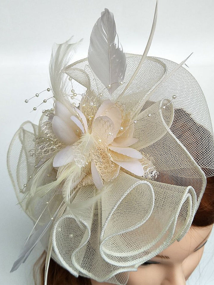 Elegant Net Saucer Hat Fascinator Hats Headpiece Flower Bow & Feather