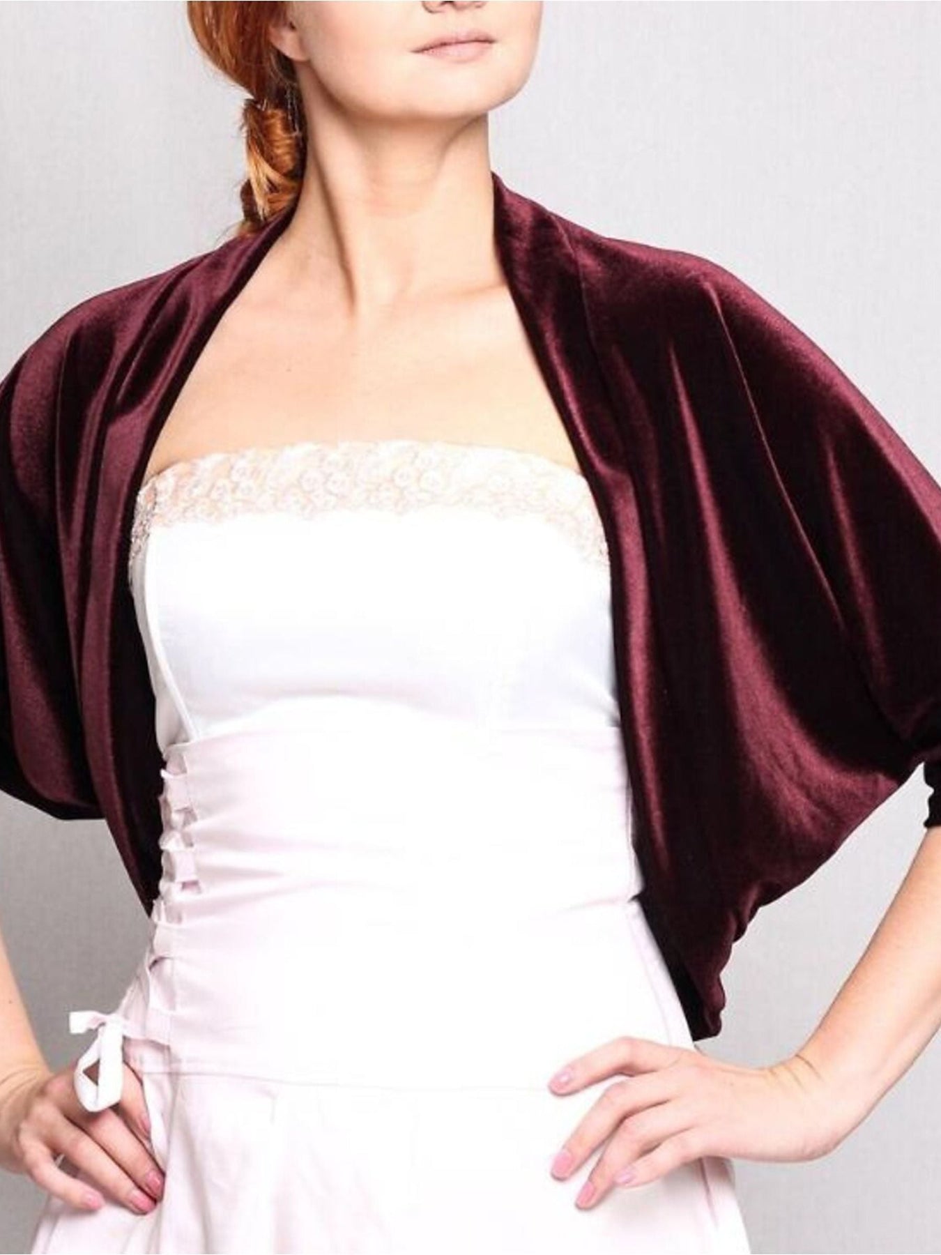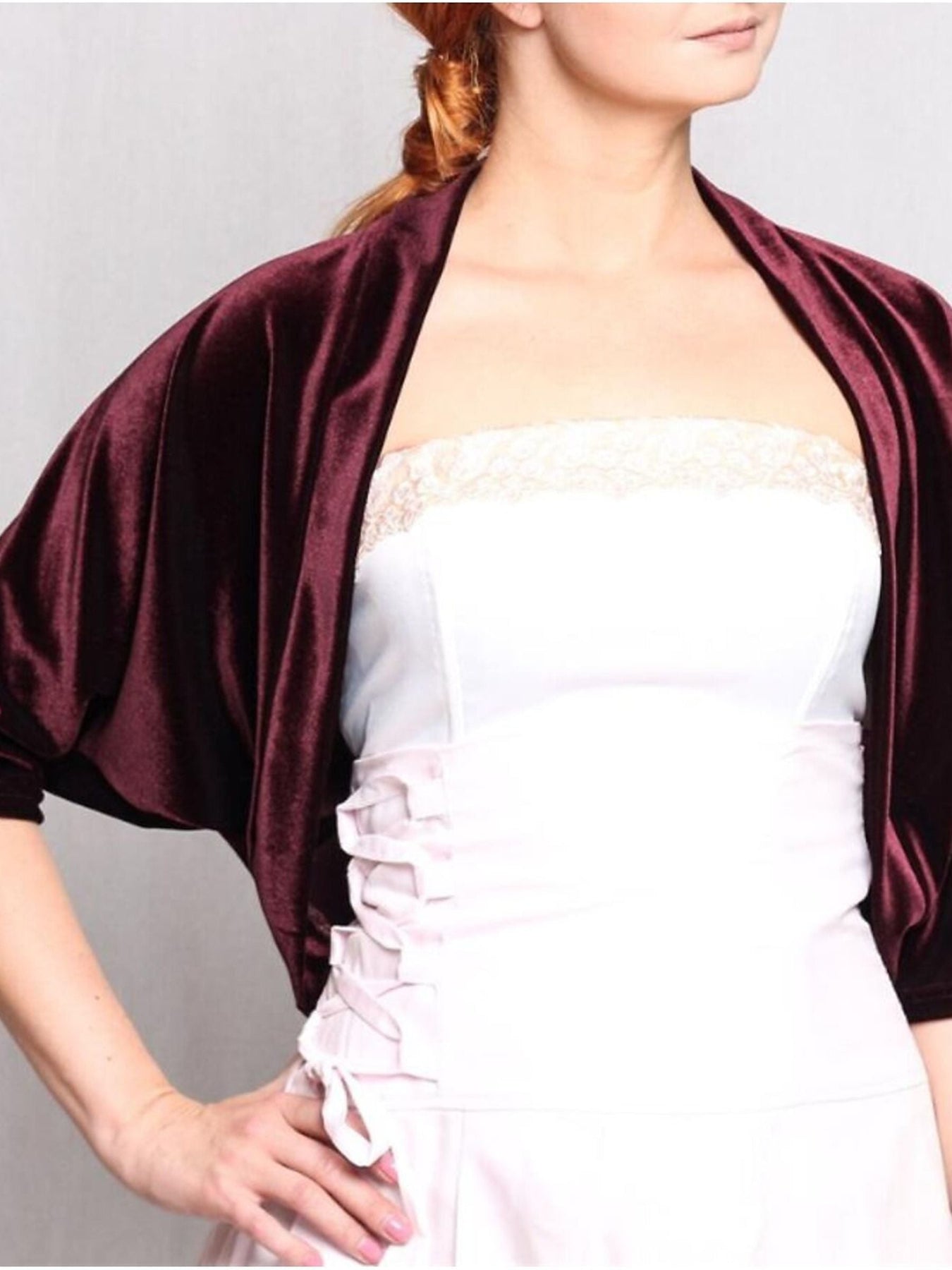 MON741204W MONDRESSY Women's Burgundy Velvet Elegant Half Sleeves Wrap Shrug Bolero