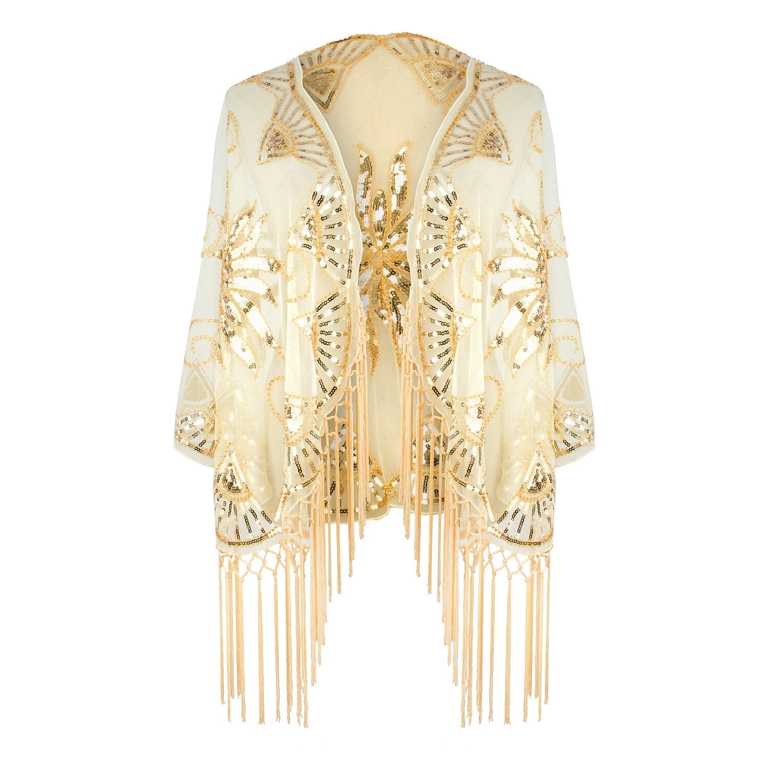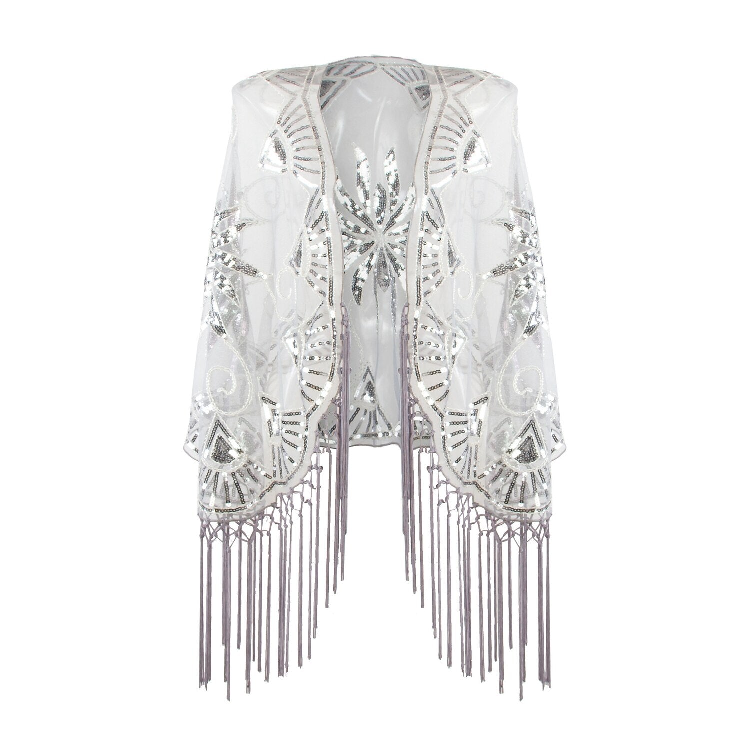 MON341850 MONDRESSY Women's Sequins Tassel Fringe Vintage Dress Cape Wrap Shawls