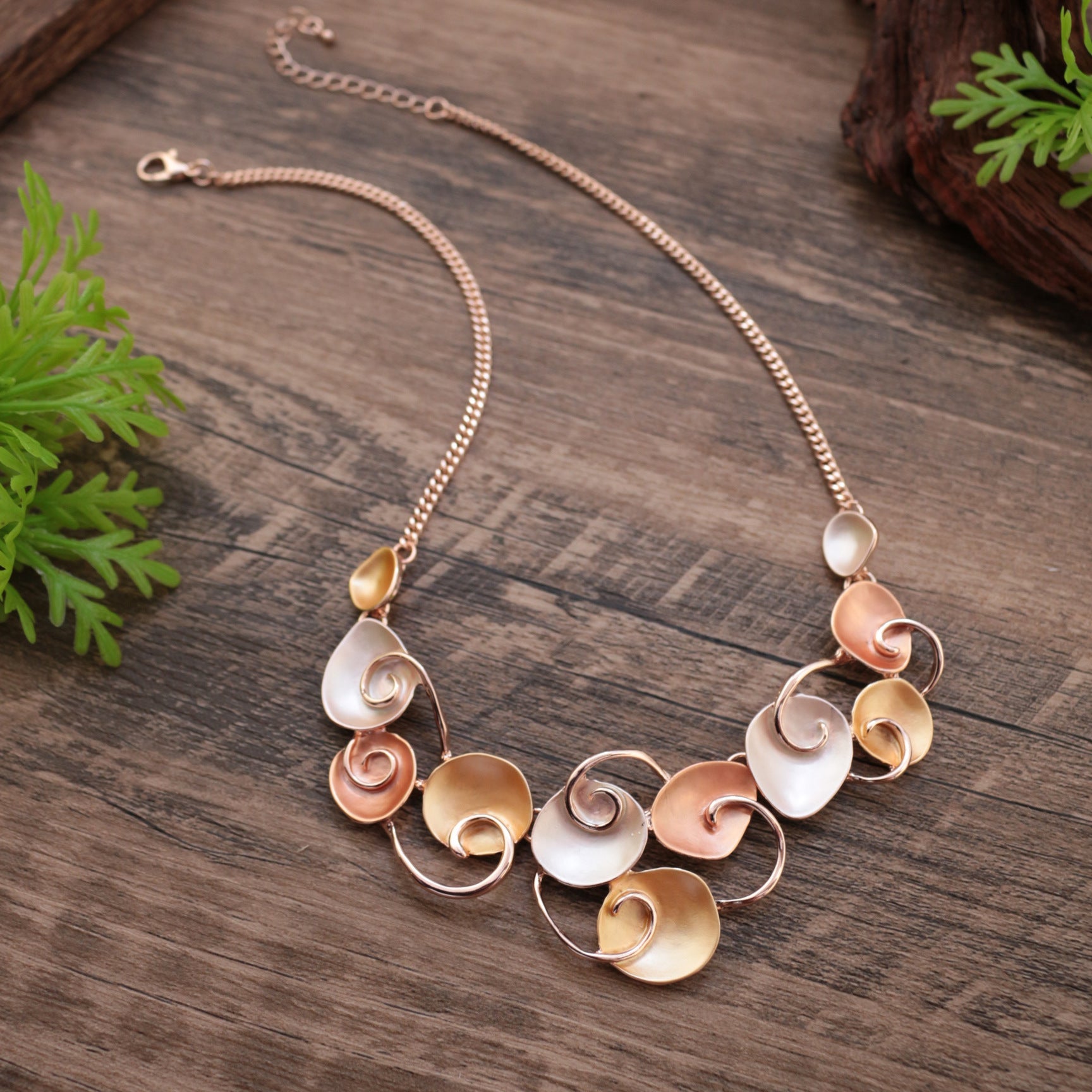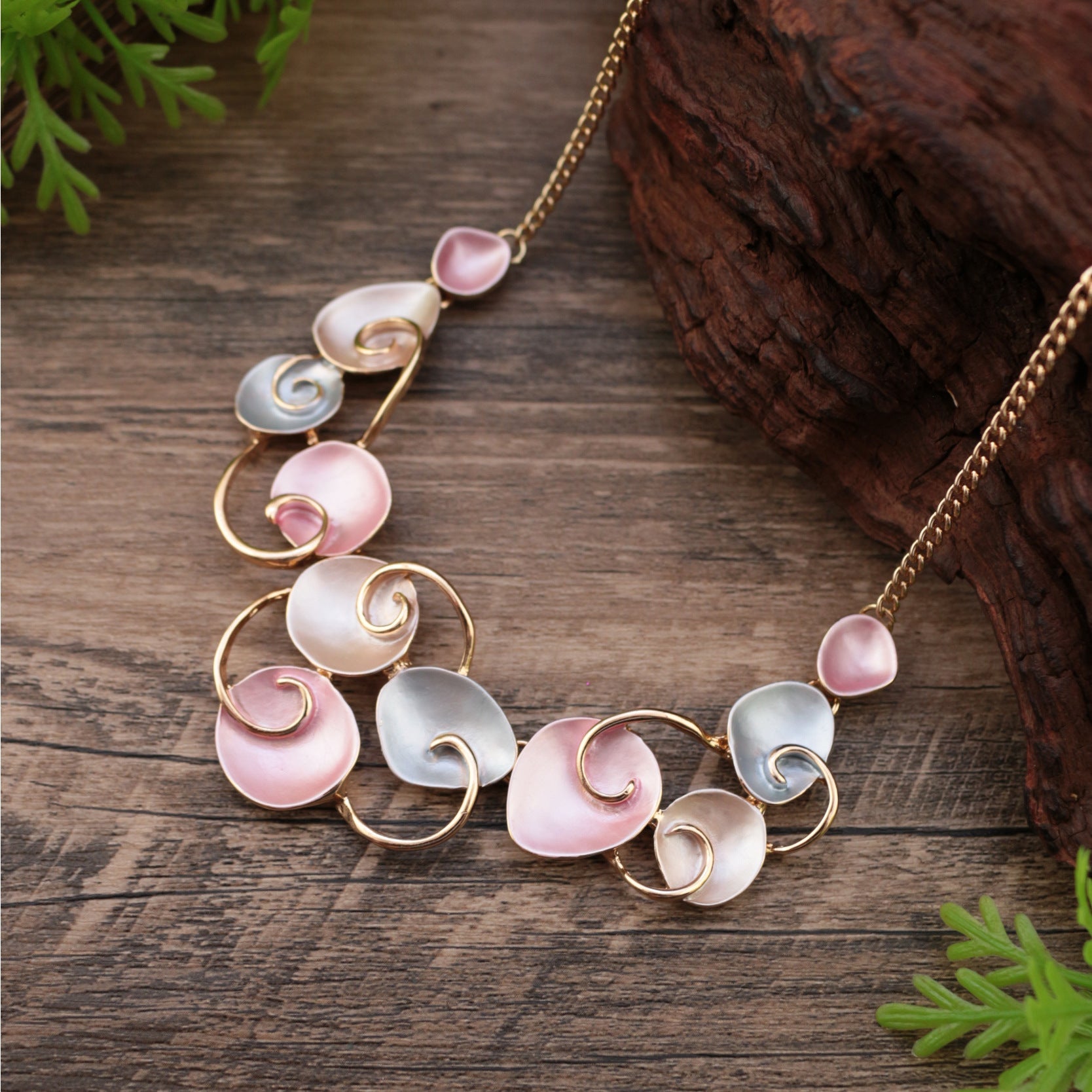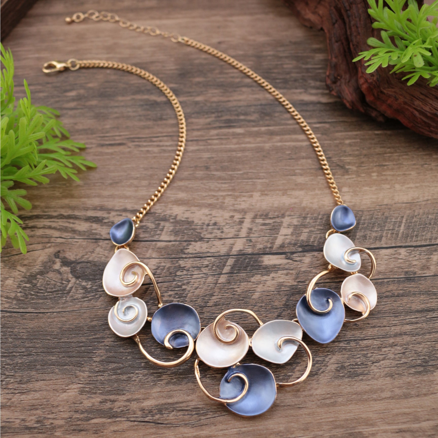 MON1441151W MONDRESSY Fashionable Art Enamel Irregular Cutout Petal Alloy Necklace