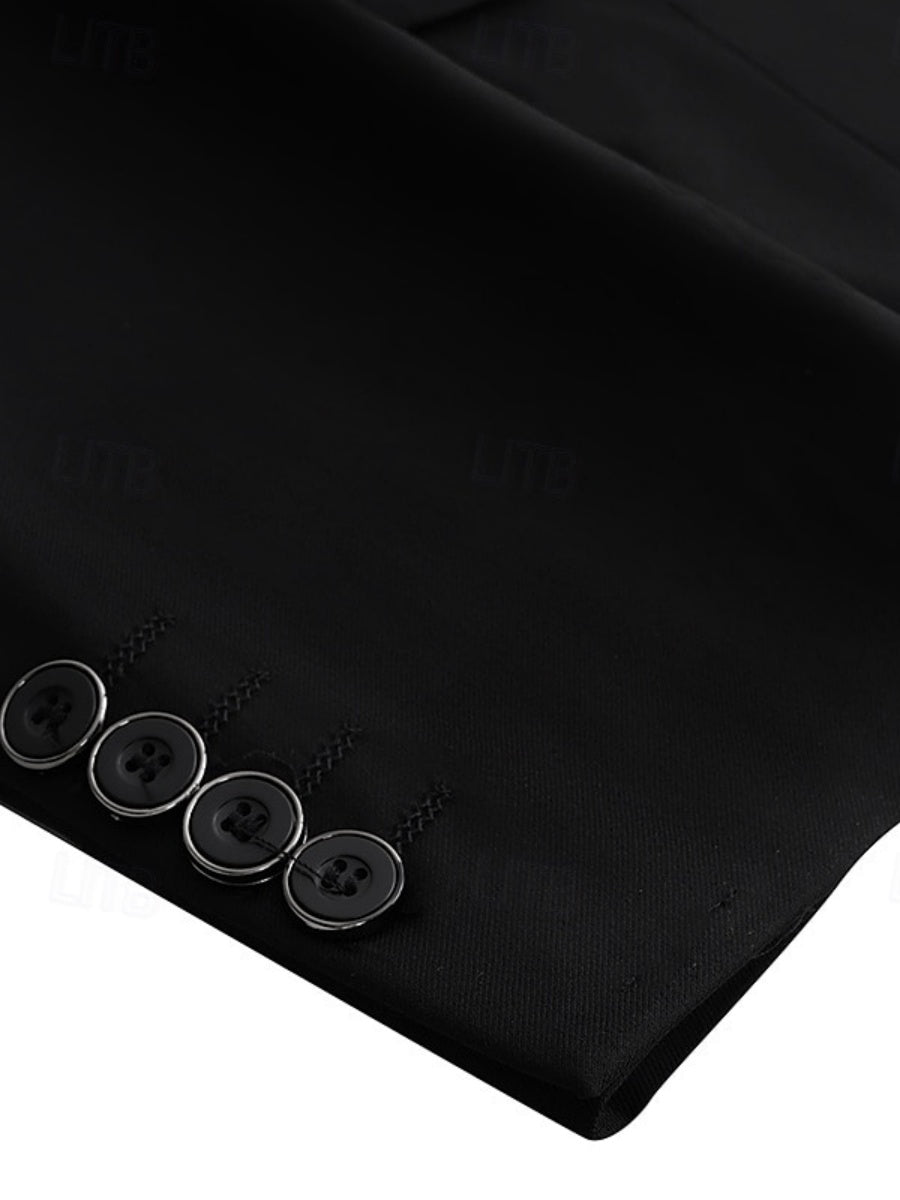 MON3121154 MONDRESSY Men's Black Single Breasted Two-buttons Notched Lapel Wedding Prom Party Suits