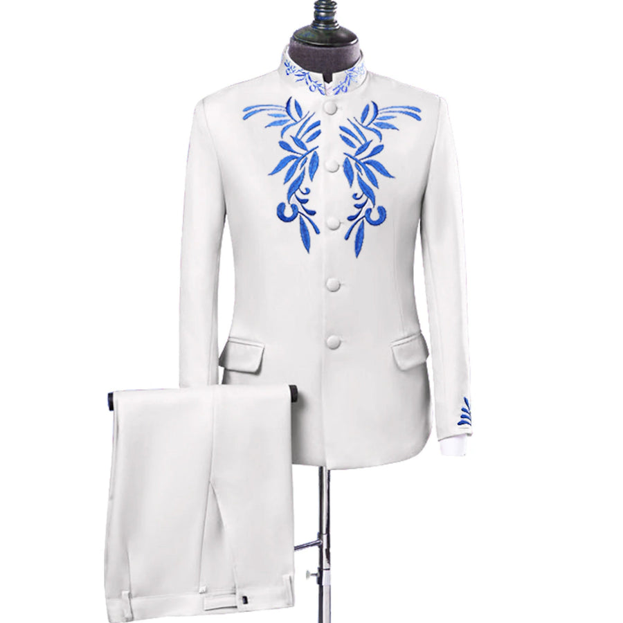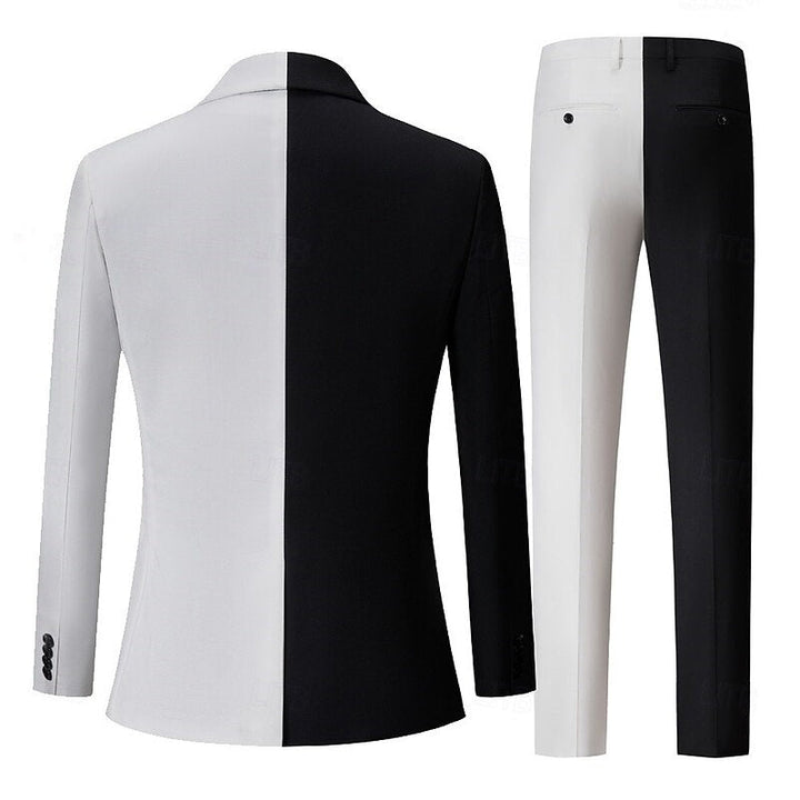 Men's Black White PatchworkPunk Fashion Standard Fit Single Breasted Party Prom Suits 2 Piece