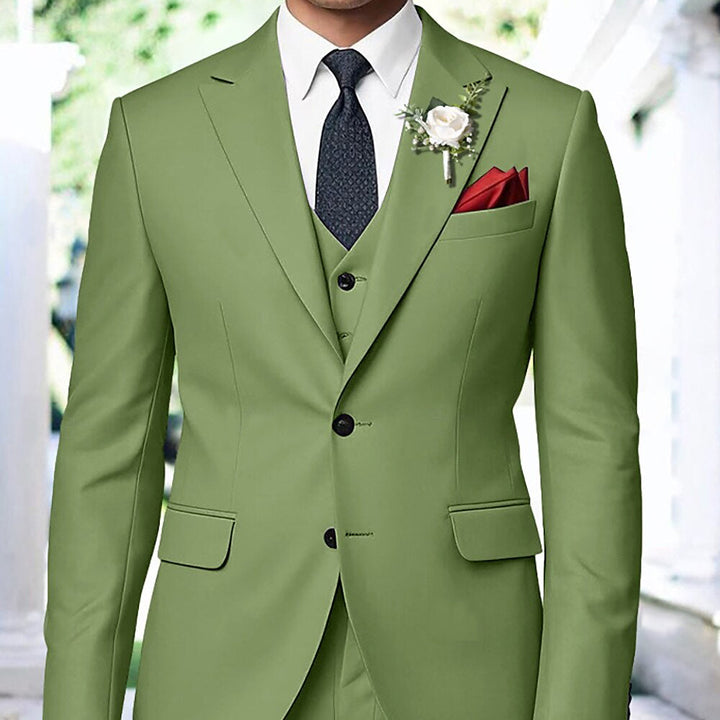 Men's Solid Colored Peak Tailored Fit Single Breasted Wedding Party Tuxedos 3 Piece