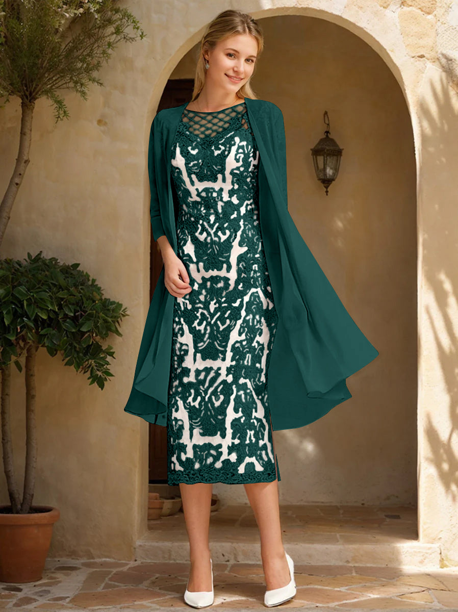 Two Pieces Sheath/Column Jewel Neck Mother of the Bride & Groom Dresses with Lace Appliques & Beadings