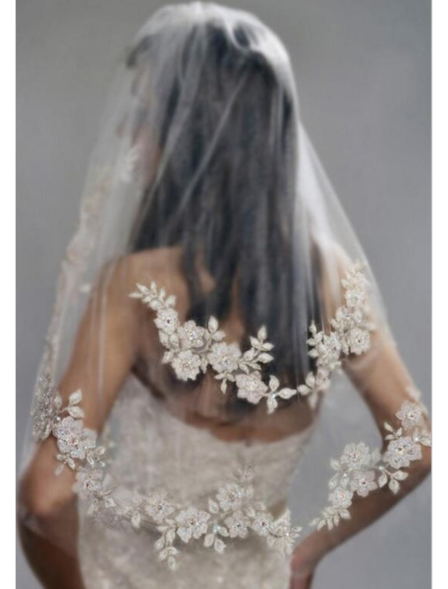 Two-tier Lace Wedding Veil with Appliques