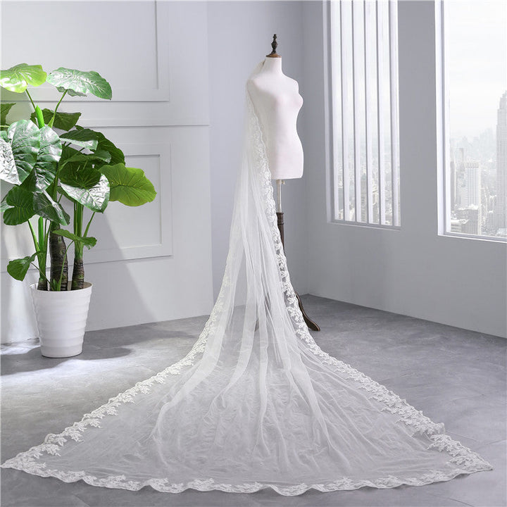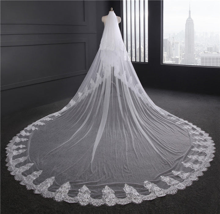 One-tier Lace veil extra wide 3M long tail Wedding Veils with Appliques