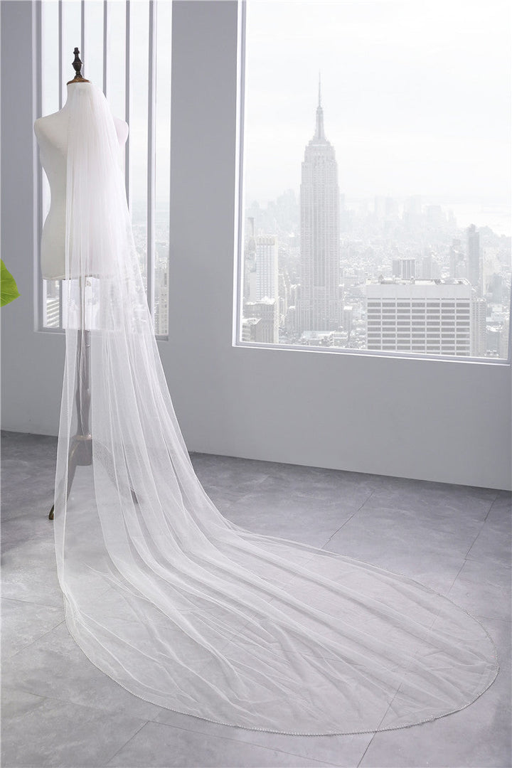 One-tier Classic Wedding Veil with Beading