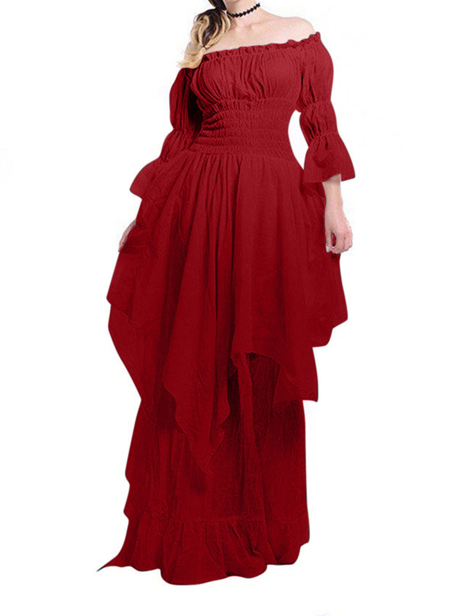 A-Line/Princess Scoop 3/4 Sleeves Vintage Costume Dresses with Ruffles & Ruches