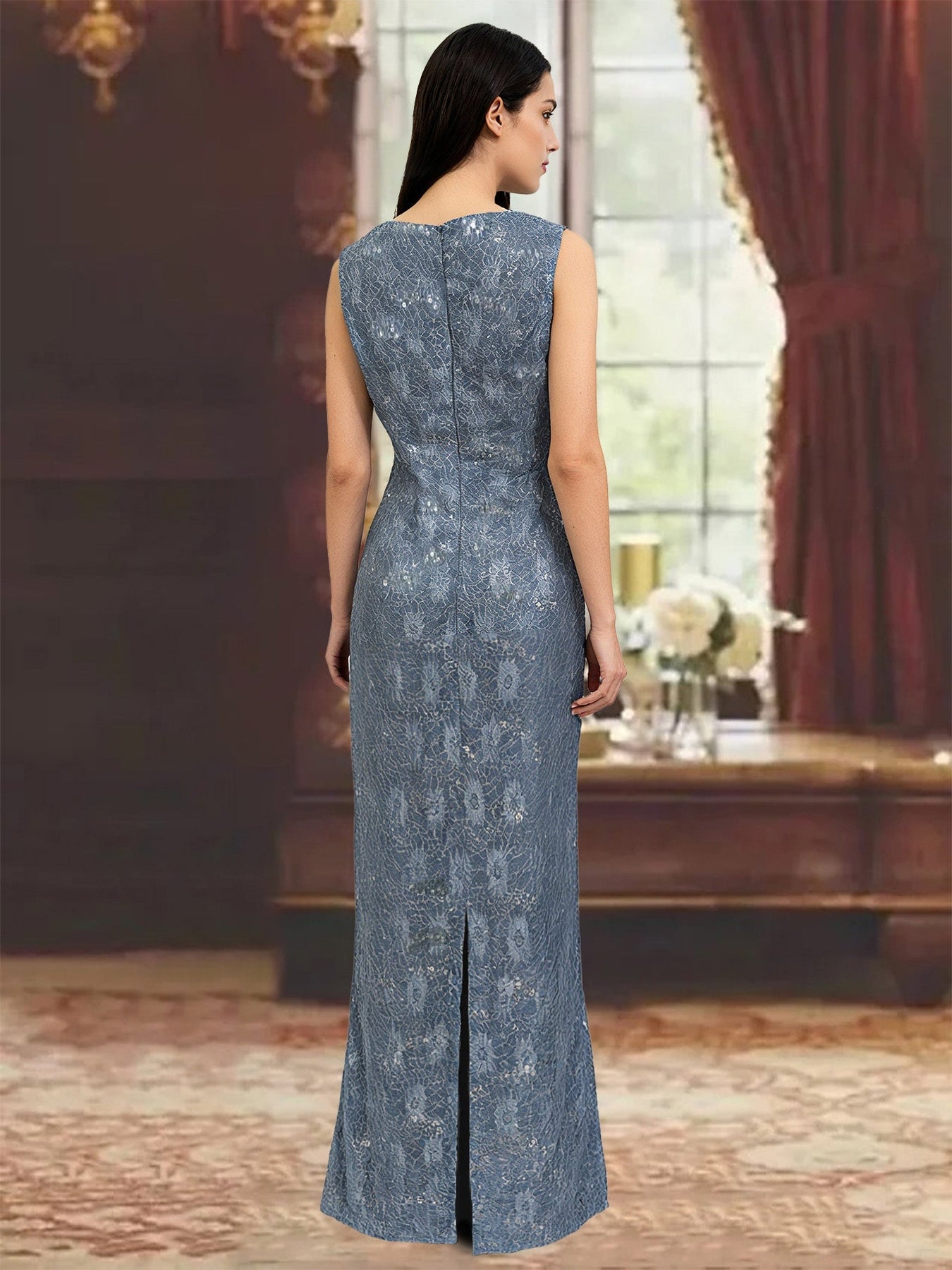 MON2311691 MONDRESSY Chiffon Scoop Ankle-length Mother of the Bride Dresses with Sequins & Jacket