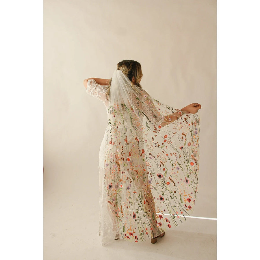 One-tier Lace Applique Wedding Veil Cathedral Veils with Embroidery