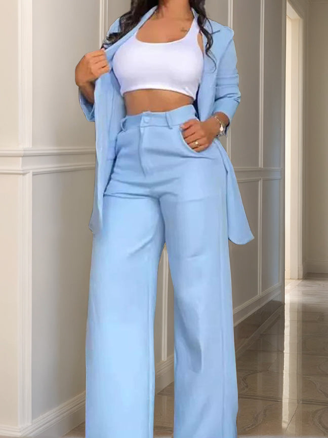 Women's 2 Pieces Light Blue Notched Lapel Long Sleeves Suits