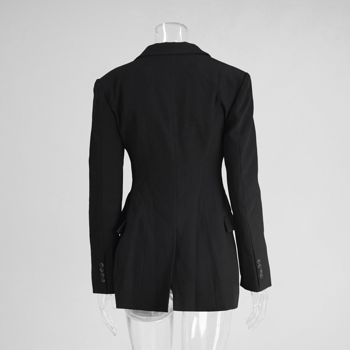 MON4120035W MONDRESSY Women's Notched Lapel Black Single Breasted Two-button Long Sleeves Blazer