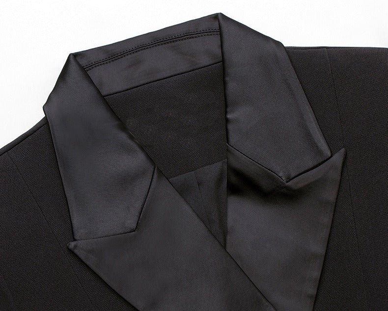 MON4120031W MONDRESSY Women's Peaked Lapel Double-breasted Eight-button Lace Flared Sleeves Blazer Dresses
